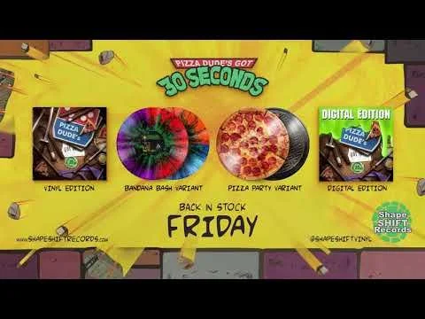 A “Back in Stock” trailer for Shapeshift Records 16-bit TMNT cover album, PIZZA DUDE’s Got 30 Seconds.